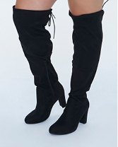 It always seems like the prettiest New Year’s dresses are always super short, showy, and therefore, unwearable. But, on the off chance you find a long sleeve, high-neck short dress like this one above from Forever 21, it’ll look super cute over a pair of leggings and either thigh-high, or over-the-knee boots like the ones below.