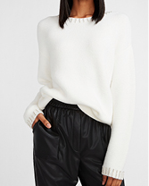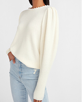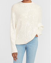 Get dolled up in a pretty flowy skirt like this high-waisted pleated one from Express pictured above. It’ll look even more elegant with a loose-fitting sweater or a puff sleeve top tucked in. Check out the gorgeous sweater options we’ve picked out below.