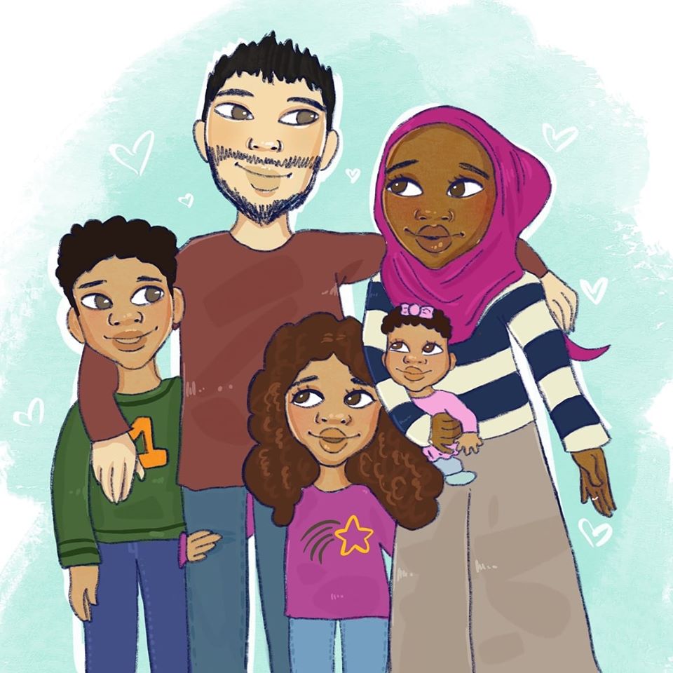 I wanted to be realistic because there are more and more interracial families developing nowadays, including us. I’m Falastiniya, my husband’s half Indian, half white, and so my kids are all sorts of things. I’m thinking of my children, of other people, my friend’s children, and my nieces and nephews. You look around and you’re like, Why is there such a small representation of those kids? So as much as I can, I want to keep doing this in my books, Inshallah.