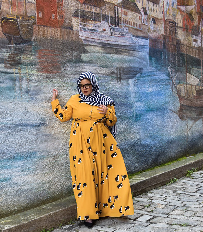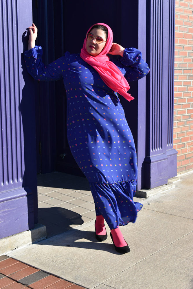 For me, cats are the new floral. I wanted the prints to be really fun and make a statement because I love making statements. I love it when I go out, I’m wearing hijab, and a woman comes up to me that would usually never even think about coming up to me and says, ‘Oh my gosh I love your dress! I love your style!’ I want people to look at me and think that I am that approachable Muslim woman who is perfectly worthy of being your friend, and having a normal conversation like there is nothing in between us. No barrier because of my hijab. No bias or any type of fear. There are so many Muslim women I’ve talked to here in the community that just don’t feel like they belong. It’s so difficult to put on a smile every day when you feel like you don’t belong in the land you’re stepping on.
